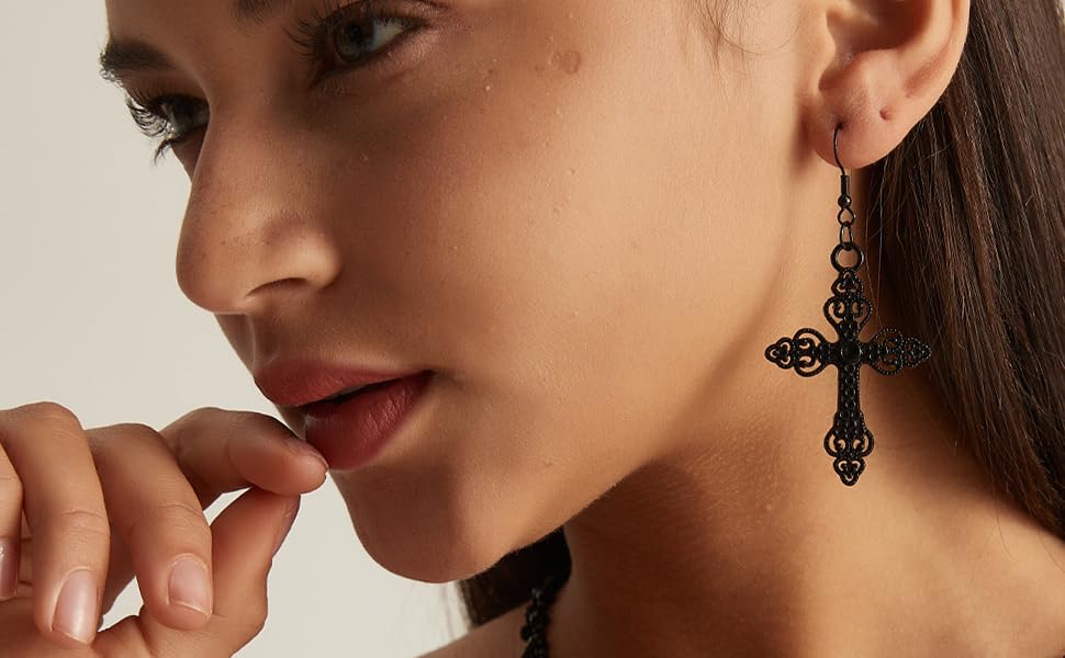 • Gothic Cross Jewelry Set: The chain of black Cross layered necklace is handmade with artificial crystals and environment-friendly alloy without any mercury or lead, so it’s allergy-free for the skin.