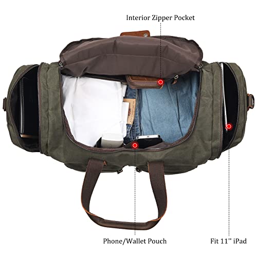 Polare 23” Waxed Canvas Cowhide Leather Waterproof Travel Duffel Bag Trim Luggage Weekender Overnight Carry on Hand Bag 3