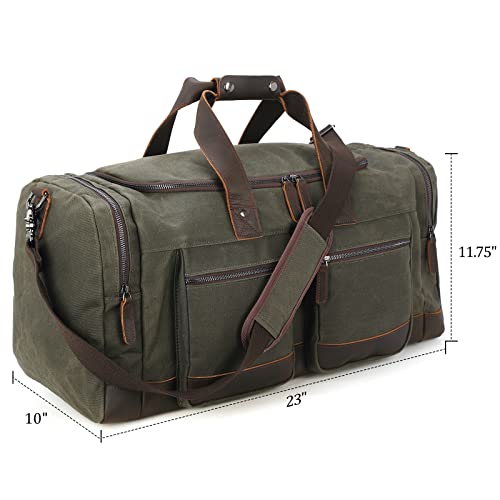 More information about Polare 23” Waxed Canvas Cowhide Leather Waterproof Travel Duffel Bag Trim Luggage Weekender Overnight Carry on Hand Bag