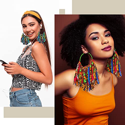 HOT ! Bonuci 2 Pairs African Earrings Juneteenth Earrings for Women African Jewelry Afrocentric Fabric Tassel Earring Hoop Earring