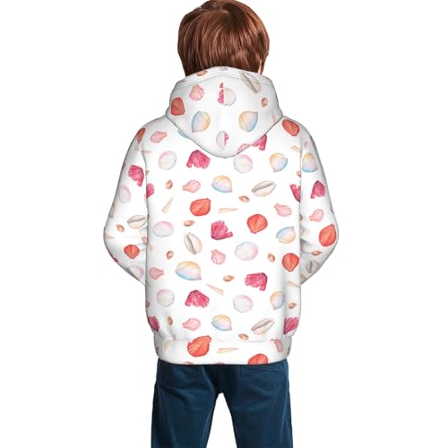 Red coral and scallop seashell Kids Pullover Hoodies Boys Sweatshirts Girls Athletic Clothes with Pocket 7