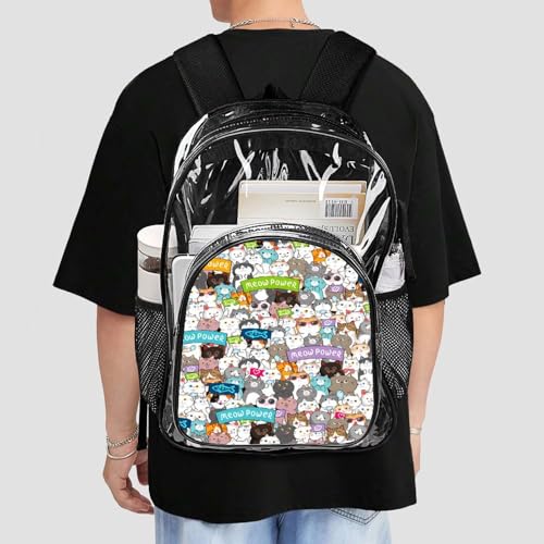 • Transparent Design & Personalized Design: This stylish clear bag is transparent, you can conveniently check whether everything you need is ready and easy to access, and easily pass the stadium security check without unnecessary delays. The exquisite front compartment pocket has a unique bright Cute Cat pattern printed on the outside, which is colorful and eye-catching, and the high-quality double zipper design is unique and fashionable
