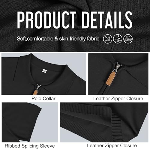 Men's Casual Zipper Polo Shirts Regular Fit Short Sleeve Knitting Shirts Stretchy Golf Shirts 4