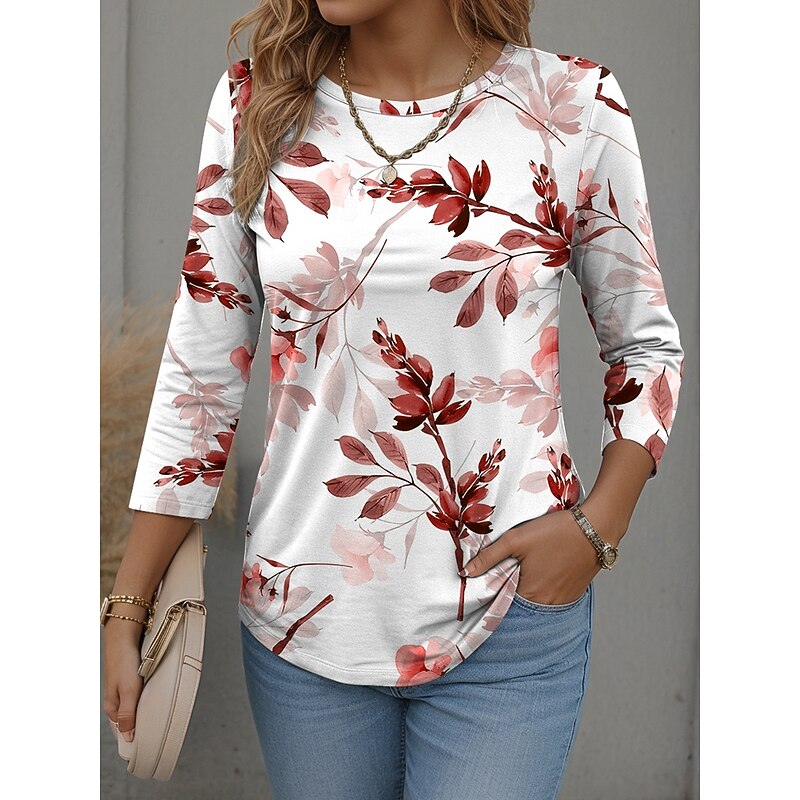 More information about Women's T Shirt Graphic Plants Stylish Casual Long Sleeve Round Neck Regular Tops Daily Weekend Print Red Blue Purple Green Fall Winter
