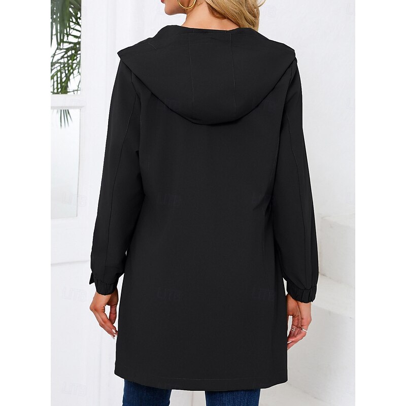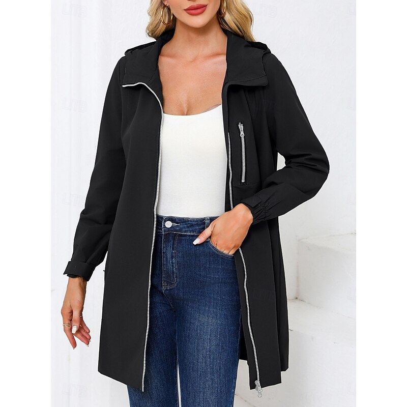 Highlights [Fabric] : Crafted from high-quality polyester, this women's jacket ensures durability and comfort, providing excellent windproof and warmth features suitable for cooler seasons. The material is both weather-resistant and breathable, ideal for maintaining comfort during outdoor activities. [Fit] : Featuring a loose fit design, this jacket combines elegance with comfort, allowing for easy layering and a flattering silhouette that accommodates various body types. The straight, tailored lines add a touch of sophistication to the casual style. [Design Highlights] : The jacket boasts a modern turndown neckline and a fully functional vertical chest pocket with zipper closure for added convenience and style. Its sleek design includes a full front open placket and an adjustable hood that enhances practicality and provides extra warmth on windy days. [Occasions] : Perfectly suited for vacations, work, and casual outings, this versatile outerwear can easily transition from professional environments to relaxed, everyday situations. The solid color pattern offers a timeless look that complements a wide range of outfits and occasions. [Sizes] : Available in sizes S, M, L, XL, and 2XL, this jacket is designed to cater to a diverse range of fits, ensuring that you find a comfortable and stylish option that meets your needs.