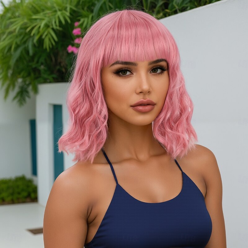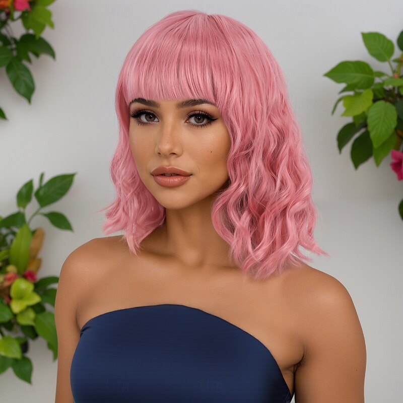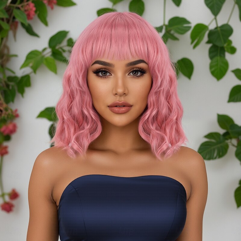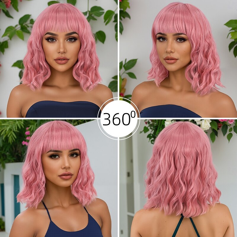 $24.99 - Synthetic Wig Body Wave Curly Weave Asymmetrical Neat Bang Machine Made Wig 14 inch A1 Synthetic Hair Women's Party Classic Comfortable Pink 2025. Shop for cheap Synthetic Trendy Wigs online? Buy at lightinthebox.com on sale today!