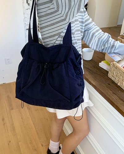 Women's Drawstring Shoulder Tote Bag Lightweight Canvas Shoulder Purse Convertible Crossbody Bag for Commuting Handbag 5