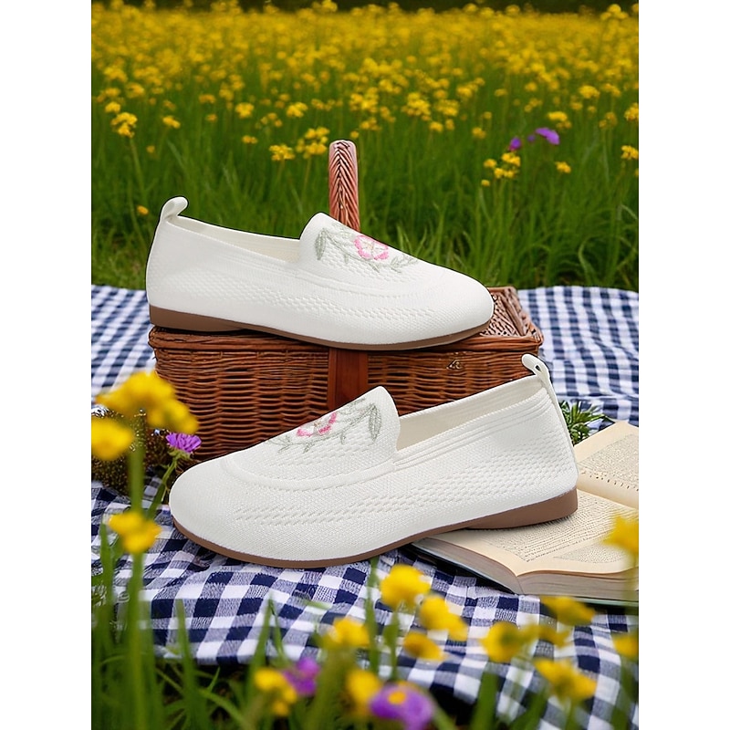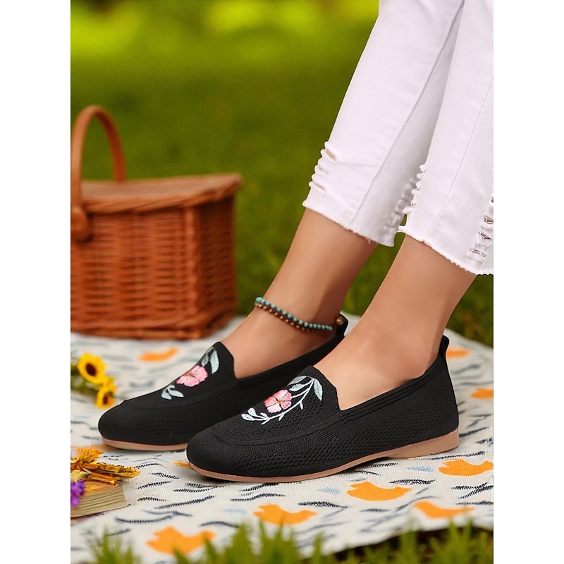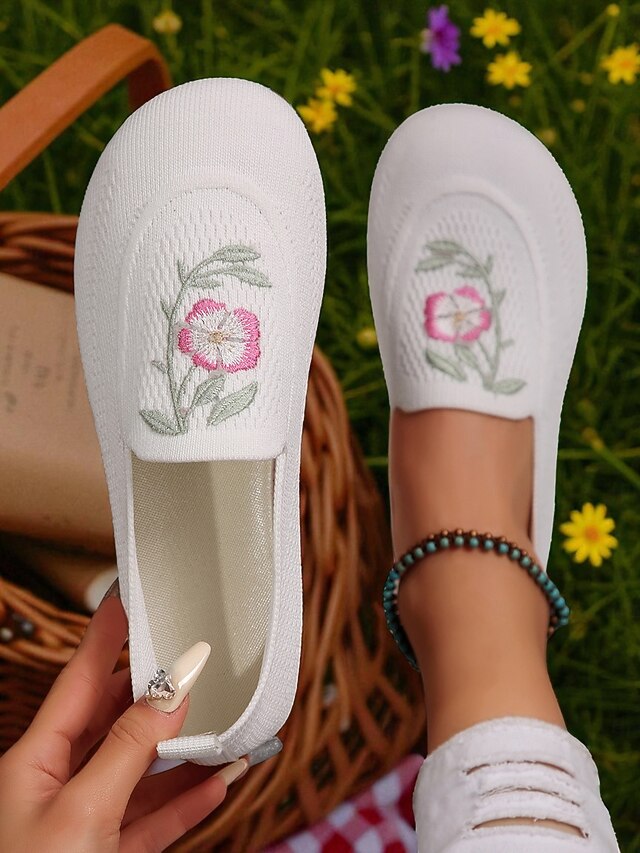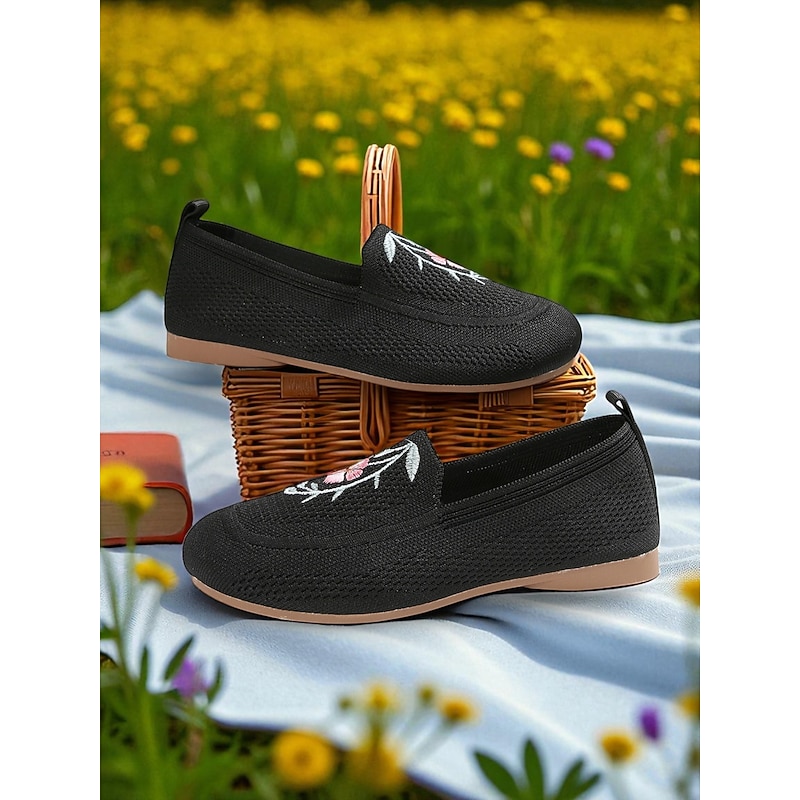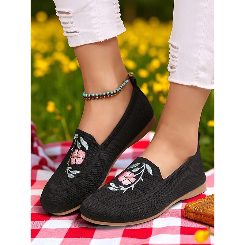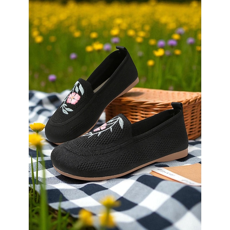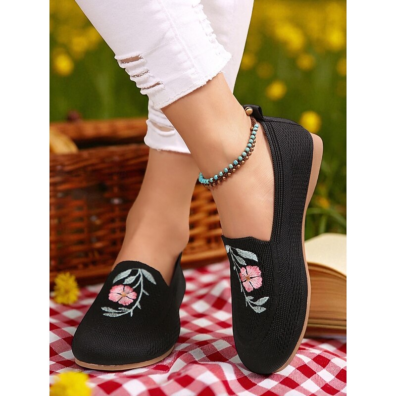 HOT ! Women's Wide Toe Barefoot Shoes – Floral Embroidered Flyknit Flats for Picnics, Garden Strolls and Summer Getaways