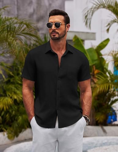 HOT ! COOFANDY Mens Button Down Short Sleeve Shirts Casual Textured Shirt with Pocket Summer Beach Wedding Shirts