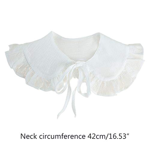 White Shawl For False Fake Collar For Women Girls Ruffled Trim Detachable Half Shirt Lapel Blouse Lace-Up Bandage Scarf 6