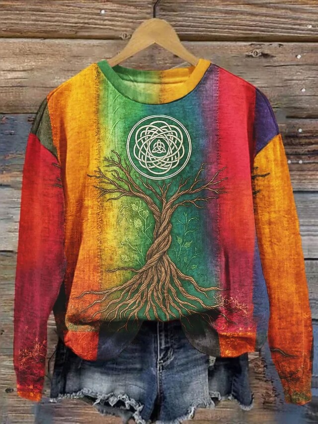More information about Women's Pullover Graphic Color Block Warm Classic Casual Long Sleeve Crew Neck Regular Tops Home Street Dailywear Print Blue Purple Orange Green Spring Fall Winter