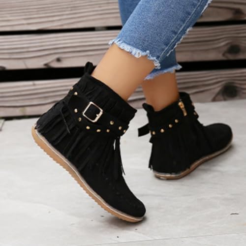 HOT ! Women's Casual Vintage Fringe Boots Lightweight Comfy Suede High Top Booties Casual Short Booties Side Zip Flat Winter Boot