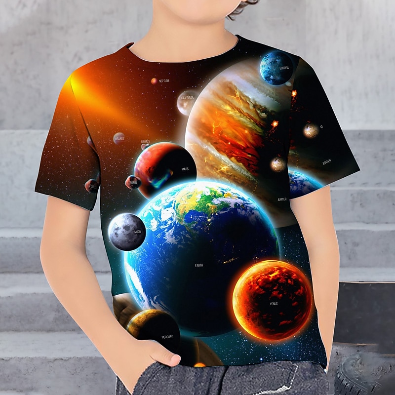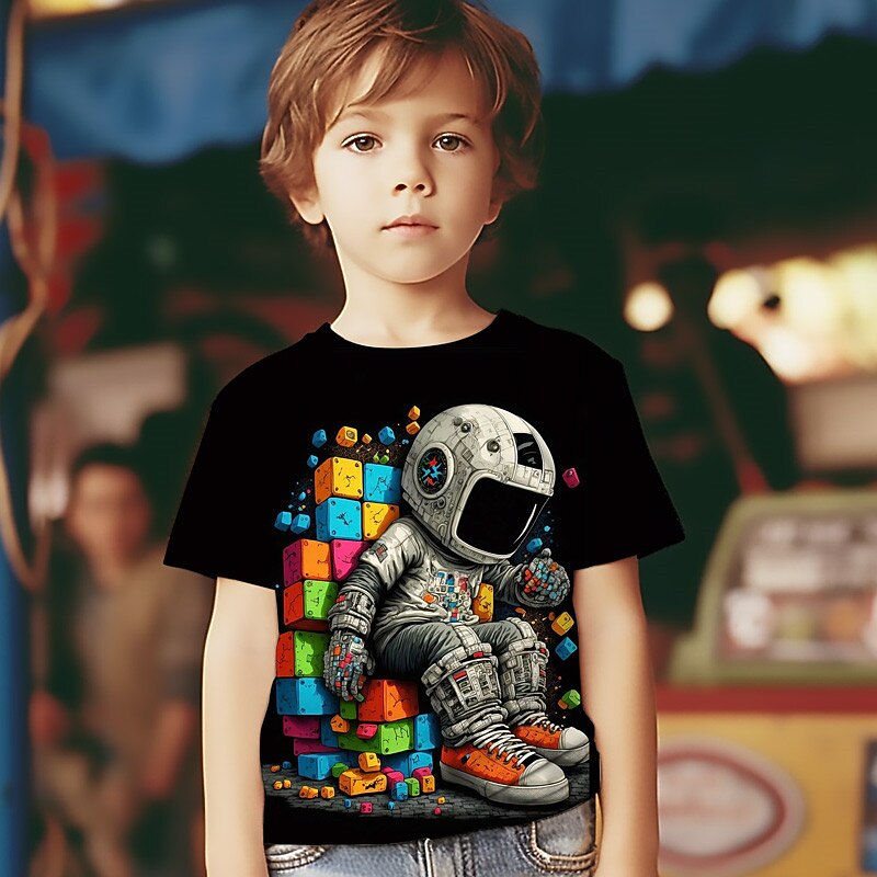 HOT ! Boys 3D Graphic Astronaut T shirt Tee Short Sleeve 3D Print Summer Spring Active Sports Fashion Kids 3-12 Years Outdoor Casual Daily Regular Fit