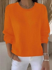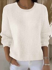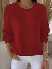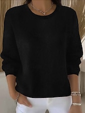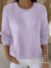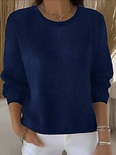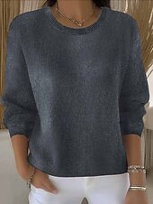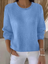 More information about Women's Sweater Fashion Streetwear Casual Pure Color Ribbed Crew Neck Knitted Long Sleeve Regular Tops Knit Outdoor Daily Weekend Light Green Blue Fall Winter