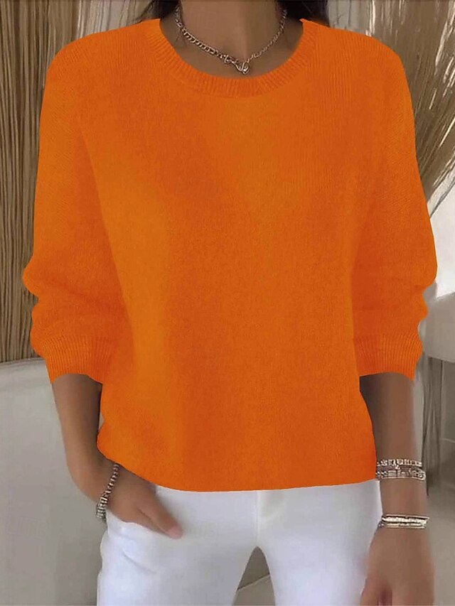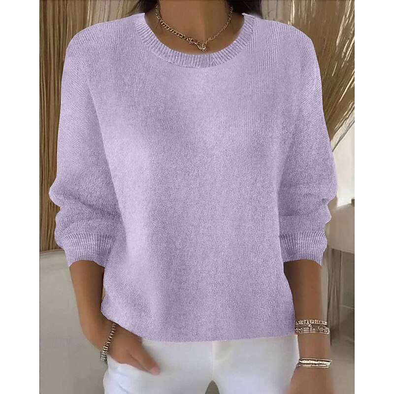 HOT ! Women's Sweater Fashion Streetwear Casual Pure Color Ribbed Crew Neck Knitted Long Sleeve Regular Tops Knit Outdoor Daily Weekend Light Green Blue Fall Winter
