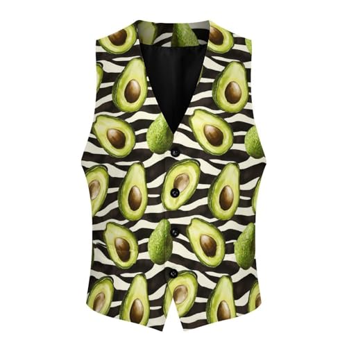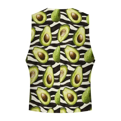 Avocado Zebra Stripes Pattern Suit Vest for Men Waistcoat Dressy V Neck Button Down Sleeveless Business Jacket Coat 1