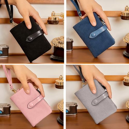 HOT ! RFID Women's Wallet Corduroy Trifold Wallet Clutch with Zipper Pocket wristlet for Women Ladies Credit Card Holder (Pink)