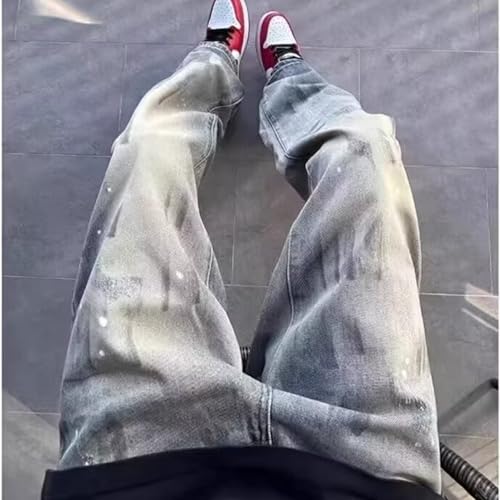 More information about Baggy Jeans Men Graffiti Baggy Barrel Jeans Men Relaxed Fit Wide Leg Washed Denim Pants Streetwear for Skater