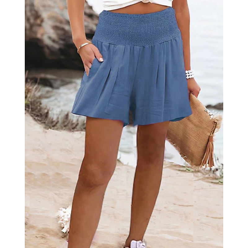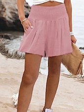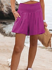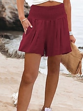 More information about Women's Shorts Sunday Shorts Baggy Shorts Streetwear Casual Short High Waist Plain Elastic Waist Breathability Soft Micro-elastic Vacation Street Daily Wear Wine Black Pink Red Summer Regular Fit