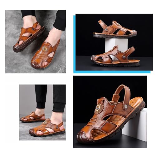 CLSQLXYJZC Men's Outdoor Leather Closed Toe Soft Sole Adjustable Arch Support Beach Sandals, Casual Two Uses Beach Flat Walking Breathable Sandles, for Travel, Beach, Meeting, Shopping, Leisure 7