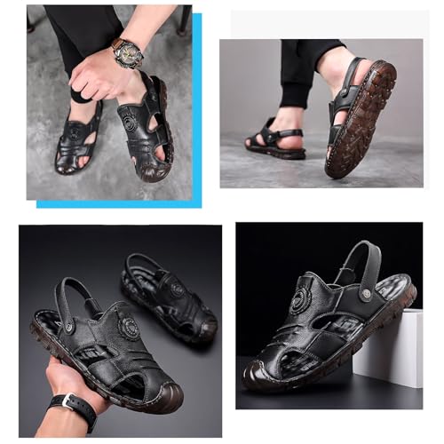 CLSQLXYJZC Men's Outdoor Leather Closed Toe Soft Sole Adjustable Arch Support Beach Sandals, Casual Two Uses Beach Flat Walking Breathable Sandles, for Travel, Beach, Meeting, Shopping, Leisure 6