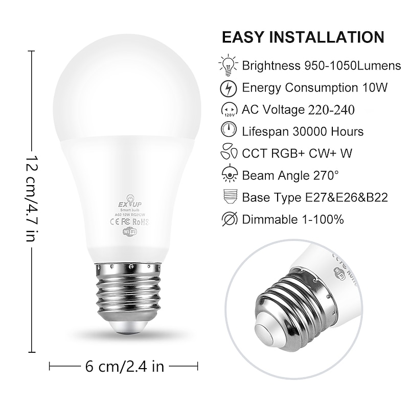 Highlights - Enhanced lighting experience with LED technology - Energy-efficient design helps save on electricity bills - Control the bulbs remotely using a smartphone app - Compatible with various smart home systems, making integration seamless - Dimmable bulbs provide the flexibility to adjust brightness according to your preference - Long lifespan ensures extended usage without the need for frequent replacements - Wide range of color options available, allowing you to create the perfect ambiance for any occasion - Easy installation process for quick setup and convenience - Versatile usage in both residential and commercial spaces - Reliable performance and high-quality construction for lasting satisfaction.