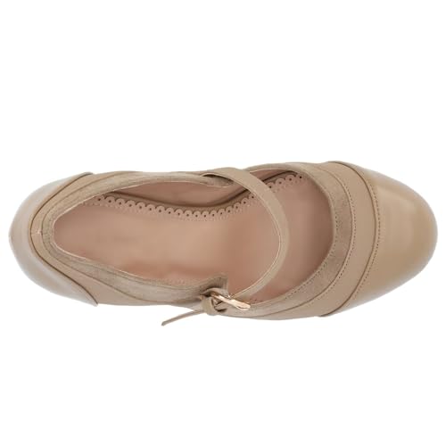 Agodor Women's Chunky Heel Mary Jane Lolita Platform Shoes Suede Round Toe Block Heel Pumps 5