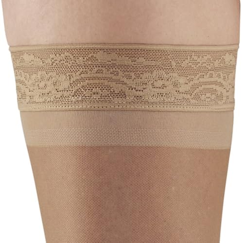 Ames Walker AW Style 4 Sheer Support 15-20 mmHg Moderate Compression Closed Toe Thigh High Stockings w/Top Band Beige Small 7