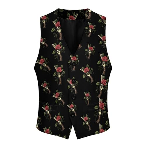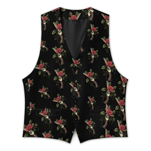 Rose And Guns Suit Vest for Men Slim Fit Tuxedo Waistcoat Button Down V Neck Business Dress Coat 2