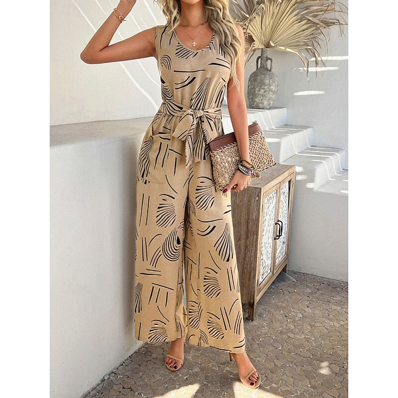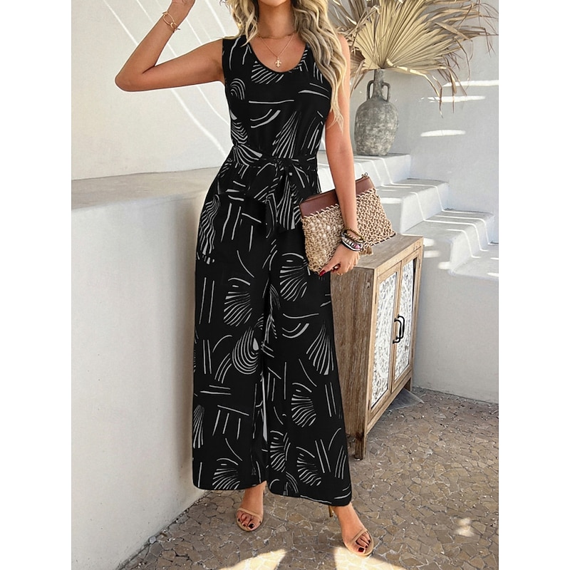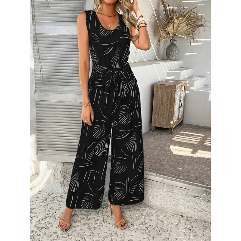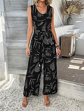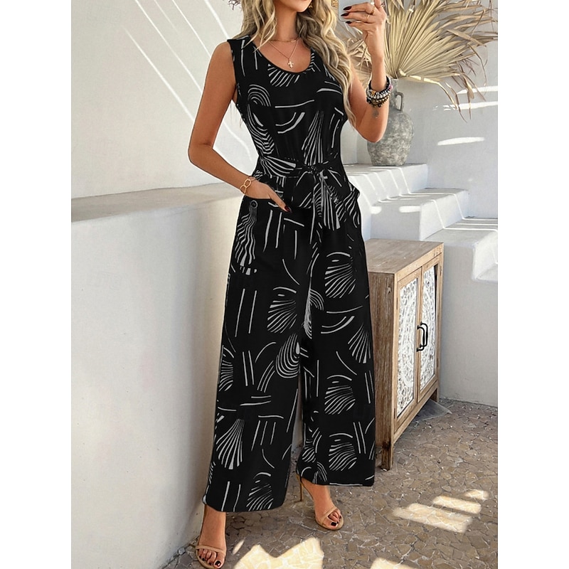 HOT ! Women's Normal Jumpsuit Active Graphic Sleeveless Wide Leg U Neck High Waist Vacation Daily Regular Fit Black Red Green Summer