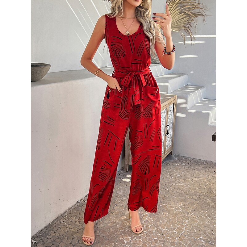 More information about Women's Normal Jumpsuit Active Graphic Sleeveless Wide Leg U Neck High Waist Vacation Daily Regular Fit Black Red Green Summer