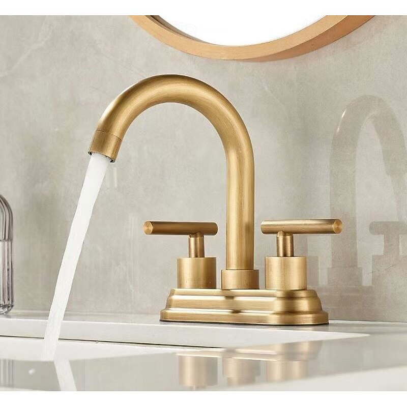 $113.99 - 2 Holes Modern Hot and Cold Mixed Brushed Gold Deck Mount Centerset 4 inch Bathroom Vanity Double Lever Handles Retro tap 2025. Shop for cheap Bathroom Sink Faucets online? Buy at lightinthebox.com on sale today!
