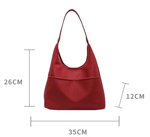 HOT ! Fashion PU Leather Tote Bag Front Pockets Unisex Shoulder Handbag Soft Faux Leather Casual Daily Purse Work Travel