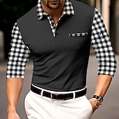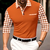 More information about Men's Button Up Polos Polo Shirt Casual Sports Lapel Long Sleeve Fashion Basic Plaid Patchwork Button Spring & Fall Regular Fit Black Navy Blue Orange Button Up Polos