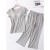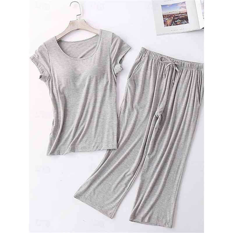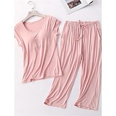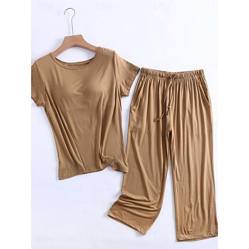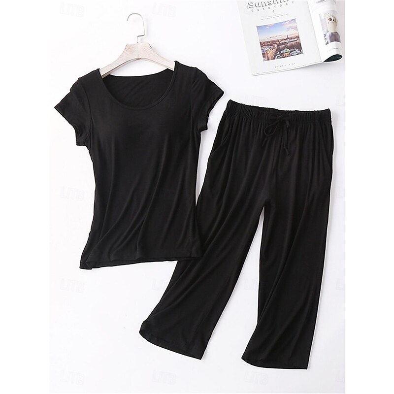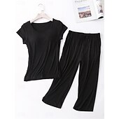 More information about Women's Pajamas Sets Pure Color Simple Comfort Home Daily Bed Modal Breathable Crew Neck Short Sleeve T shirt Tee Pant Chest pads Summer Home Outfits