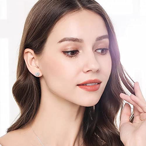 Fashion Full CZ Heart Love Minimalist Real 925 Sterling Silver Small Cartilage Stud Earrings for Women Sensitive Ear Cute Crystal Huggie Studs Jewelry Hypoallergenic Gifts Daughter Her 8mm 5