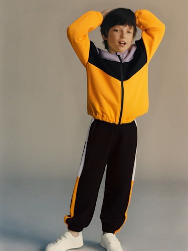 • 【Stylish & Sporty Look】Color block design with a modern zip-front hoodie creates a trendy, energetic outfit perfect for active boys.