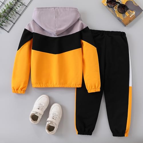 HOT ! Boys Clothes Little Boy Casual Color Block Zip-Front Hoodie & Jogger Pants 2 Pcs Outfit Set, 4-8 Years
