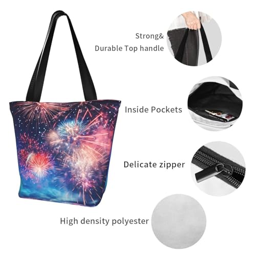 Fireworks Print Comfortable Shoulder Bag Summer HandbagTravel Beach Work Daily Use Versatile Carry 7