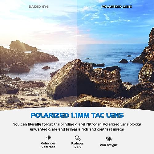 • 【HD UV400 Polarized Lens】Polarized lenses block harmful UVA/UVB & UVC rays better protect your eyes. Polarized lenses reduce glare and eye-strain. Restore true color,improve clarity and contrast.