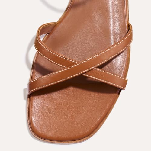 Flat Sandals for Women Open Square Toe Cross Strappy Slide Sandal Shoes Summer Slides with Buckle Ankle Strap 5