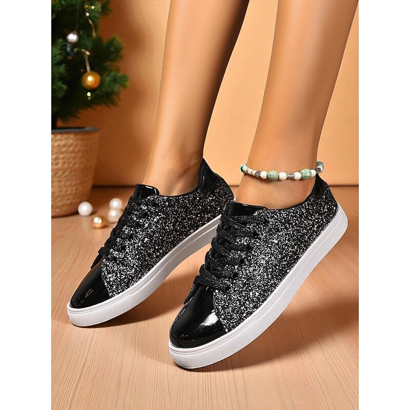 Highlights - Elevate your look with these sparkling glitter shoes - Made with high-quality synthetic leather and textile lining for durability - Round toe shape for comfortable wear - Rubber outsole for great traction and durability - Stay on trend with glitter crystal sequined jeweled details - Perfect for adding a touch of glamour to any outfit