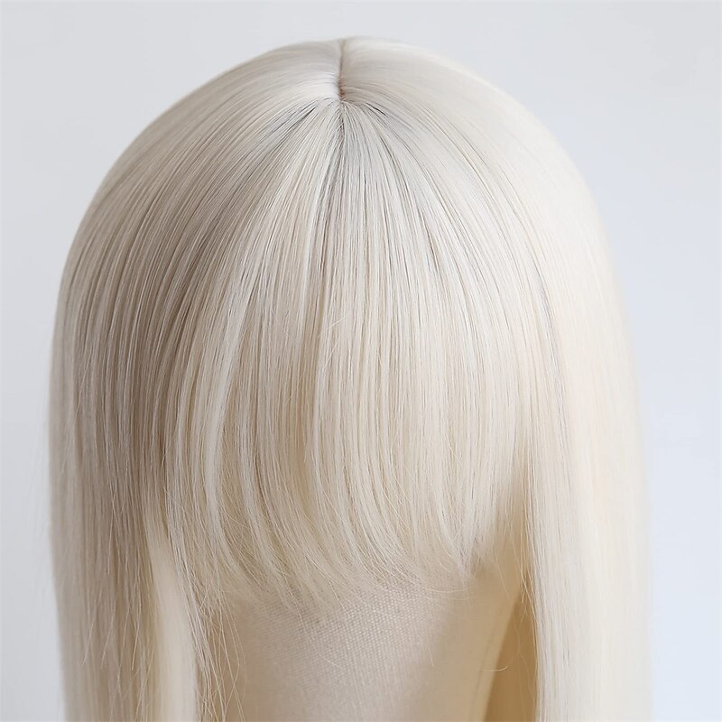 More information about Long Straight Platinum Blonde with Bangs Synthetic None Lace Front Wig for Women Natural Long Straight Middle Part #60 Color Machine Made Cosplay Daily Wear Wig barbiecore Wigs