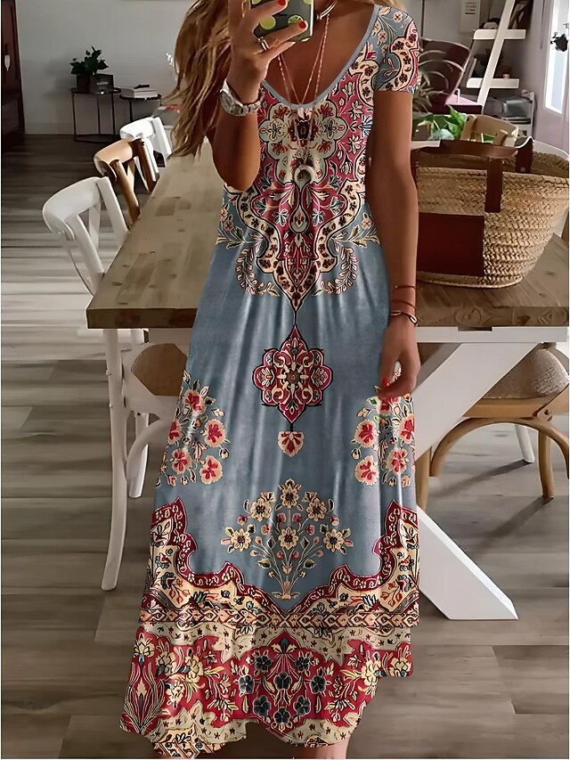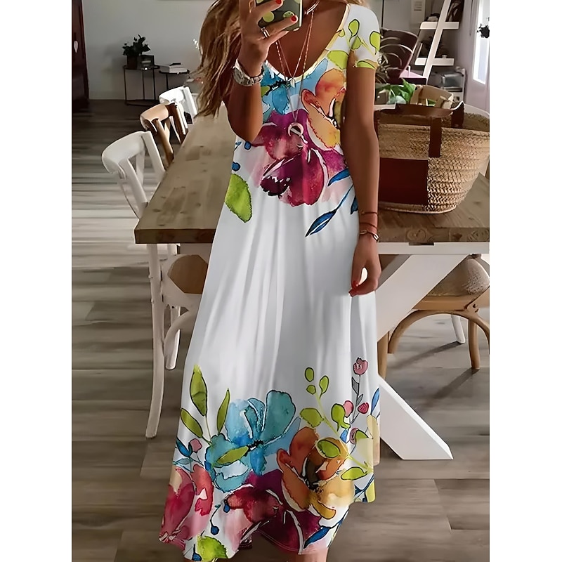 More information about Women's Midi Dress Sundress A Line Dress Vacation Casual Boho Going out Beach Standard Fit Floral Graphic Short Sleeve V Neck Gray Green White Light Green Red Summer Spring