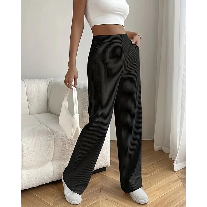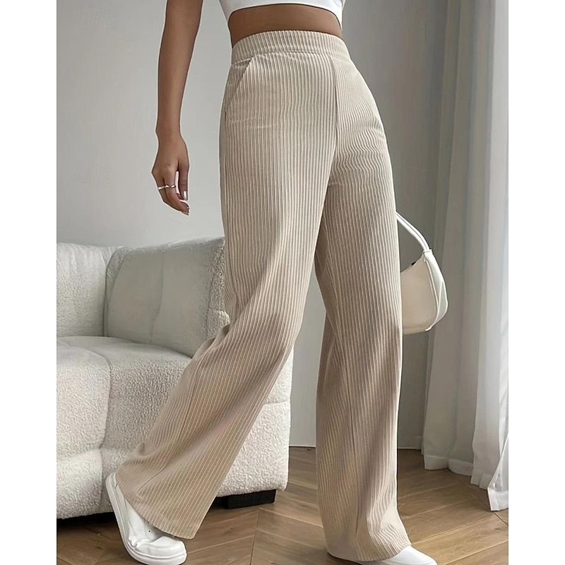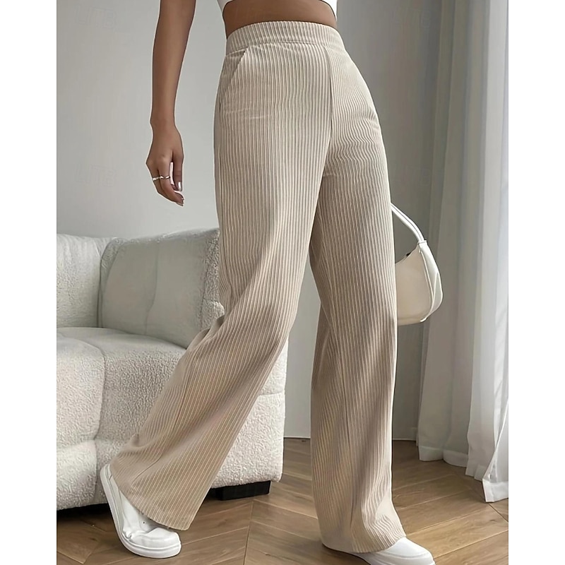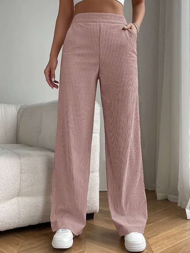 More information about Women's Wide Leg Slacks Pants Trousers Casual Full Length Natural Plain Pocket Elastic Waist Comfy Outdoor Comfortable Holiday Casual Daily Weekend Apricot Grey Black Pink Summer Regular Fit