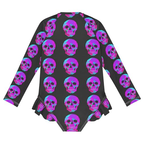 Skull Girls Long Sleeve Rashguard Swimsuit UV Protection One-Piece Swimwear Bathing Suit B0404358 1
