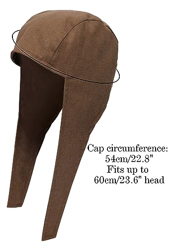 KUOIN Medieval Coif Cap Linen Hats Bonnet with Ear Flaps Victorian Peasant Cosplay Arming Cap Accessories 7