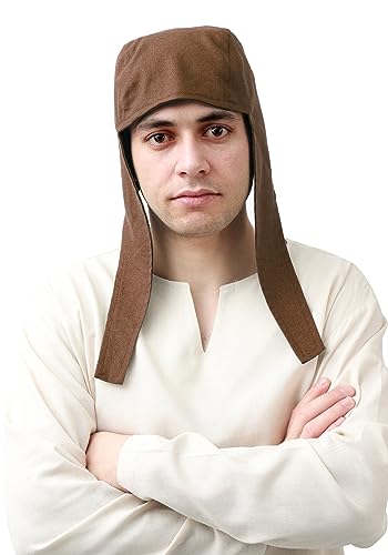 KUOIN Medieval Coif Cap Linen Hats Bonnet with Ear Flaps Victorian Peasant Cosplay Arming Cap Accessories 1