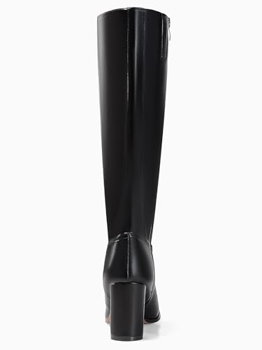 Coutgo Womens Knee High Boots Pointed Toe Chunky Heel Boot Side Zipper Winter Long Boots 4
