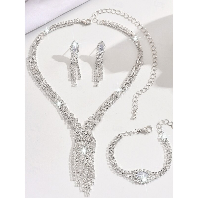 $14.99 - Women's Sparkling Rhinestone Jewelry Set - Elegant Silver Necklace, Bracelet, Earrings and Ring, Luxurious Statement Accessories for Evening Dance and Cocktail Parties 2025. Shop for cheap Women's Necklace online? Buy at lightinthebox.com on sale today!